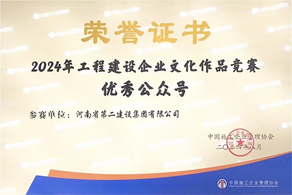 会议公布了2024年工程建设企业文化作品竞赛获奖单位,表彰了在以先进文化引领企业高质量发展领域作出突出成绩的建筑业企业。开云足球·(中国)官方网站提报的案例《筑牢文化根基 赋能发展引擎》获评“2024年工程建设企业文化建设优秀案例”,公众号(@河南二建集团)获评“优秀公众号”,网站(/)获评“优秀网站”。其中,开云足球·(中国)官方网站已连续三年获评“工程建设企业文化建设优秀案例”。