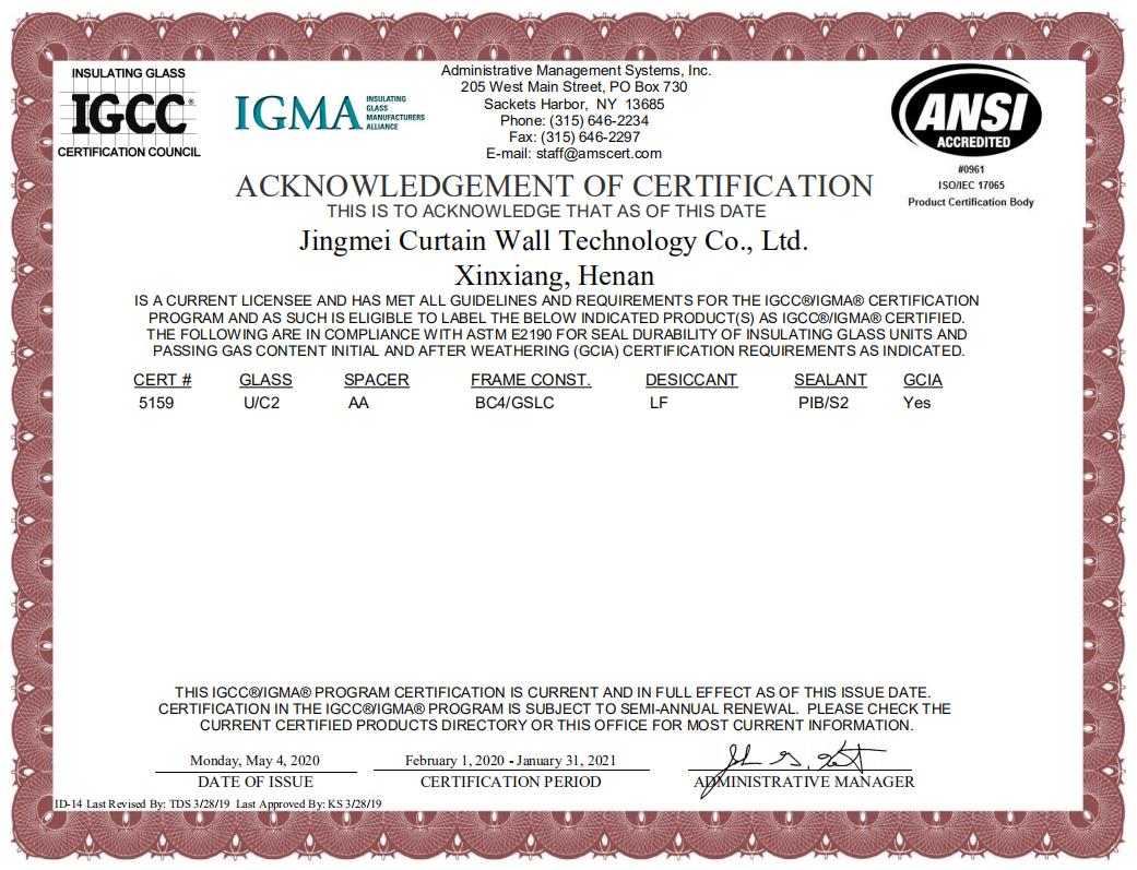 5月8日,开云足球·(中国)官方网站下属的静美幕墙技术有限公司中空玻璃产品顺利通过了美国IGCC/IGMA实验室样品认证检测,荣获IGCC/IGMA认证证书,成为目前河南省唯一一家通过美国I…