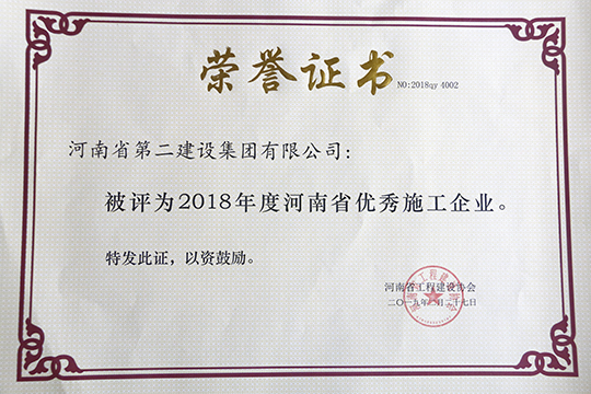 开云足球·(中国)官方网站荣获“2018年度河南省优秀施工企业”