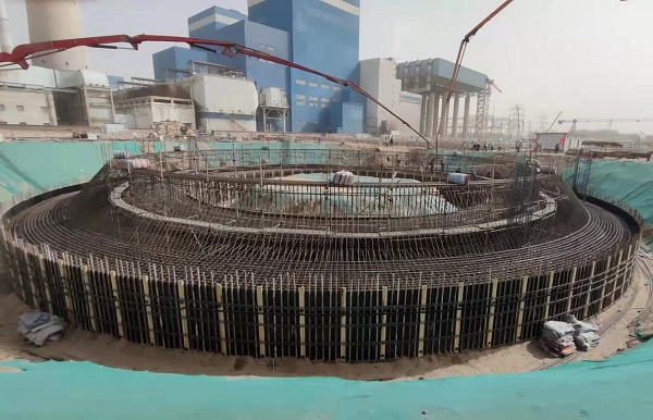 第二项目管理部达拉特发电厂五期1X1000MW机组工程烟囱基础顺利浇筑