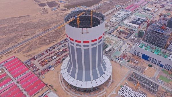 国电双维电厂新建工程#1钢结构间冷塔主体结构安装完成